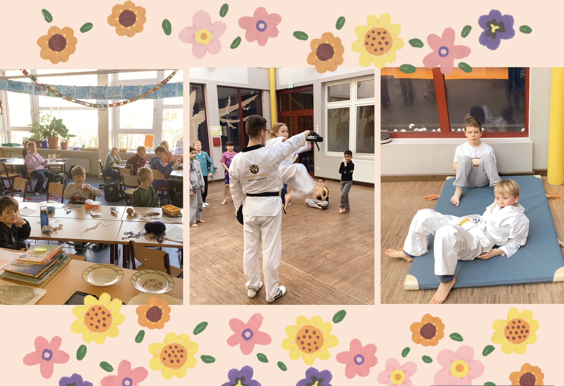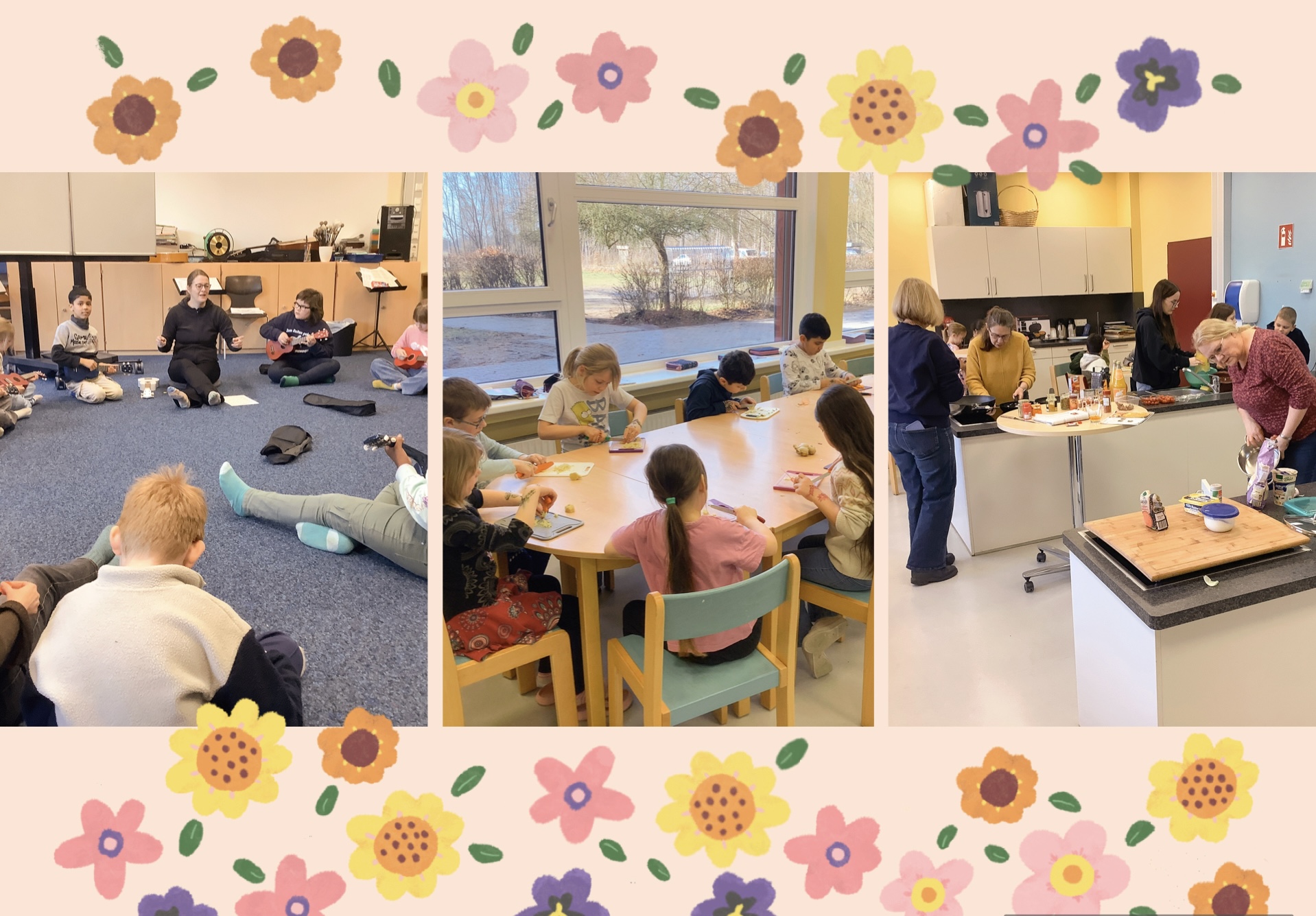 Die Kinder konnten aus vielen spannenden Projekten wählen und dabei kreativ werden, Neues entdecken und gemeinsam aktiv sein. Ob bei einer Reise nach Indien mit Handmalerei, Bollywood-Tanz und buntem Holi-Fest, beim Papier schöpfen, Steine bemalen, Drucken und Stempeln, im Schulorchester, bei Sport und Parkour, Taekwondo, nachhaltigen Bastelideen oder auf einer Reise um die Welt – überall wurde mit viel Freude gearbeitet, ausprobiert und gelernt.